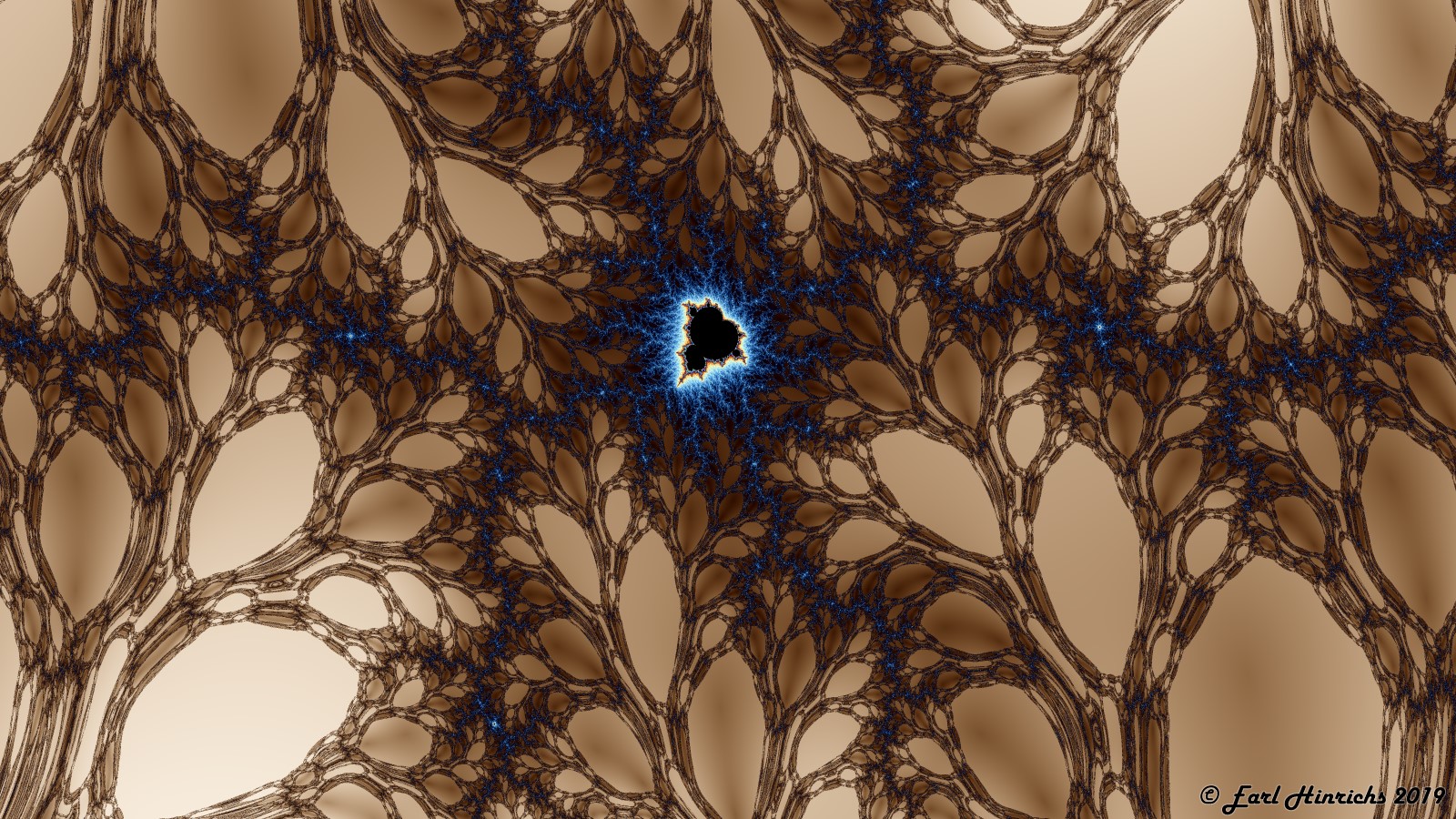 I am short on time today, but still striving for a post a day. So just a picture with very few words. Bugs fractal, parameter a=1.2. Viewport center -1.279+0.371i, width = .008.