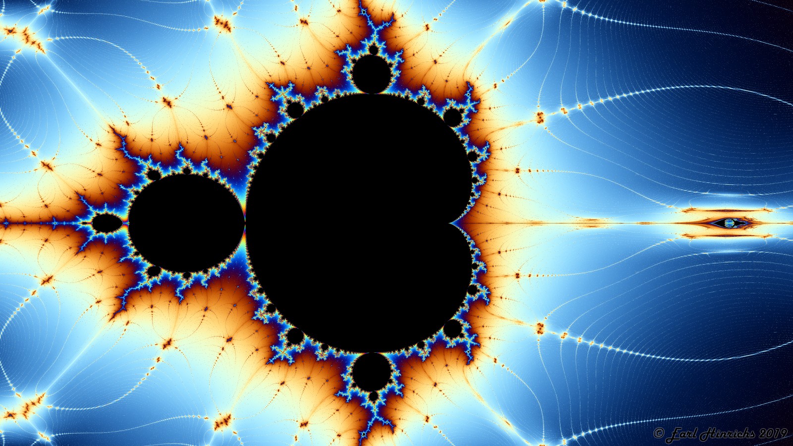 Compare this image with Bugs #8. Same location, zoom, and color, same parameter a = 2.5, but with the R version replacing the I version of bug. The webbing appears to be everywhere, although it quickly becomes too thin to see at this image resolution.