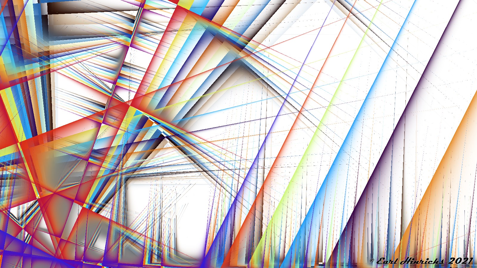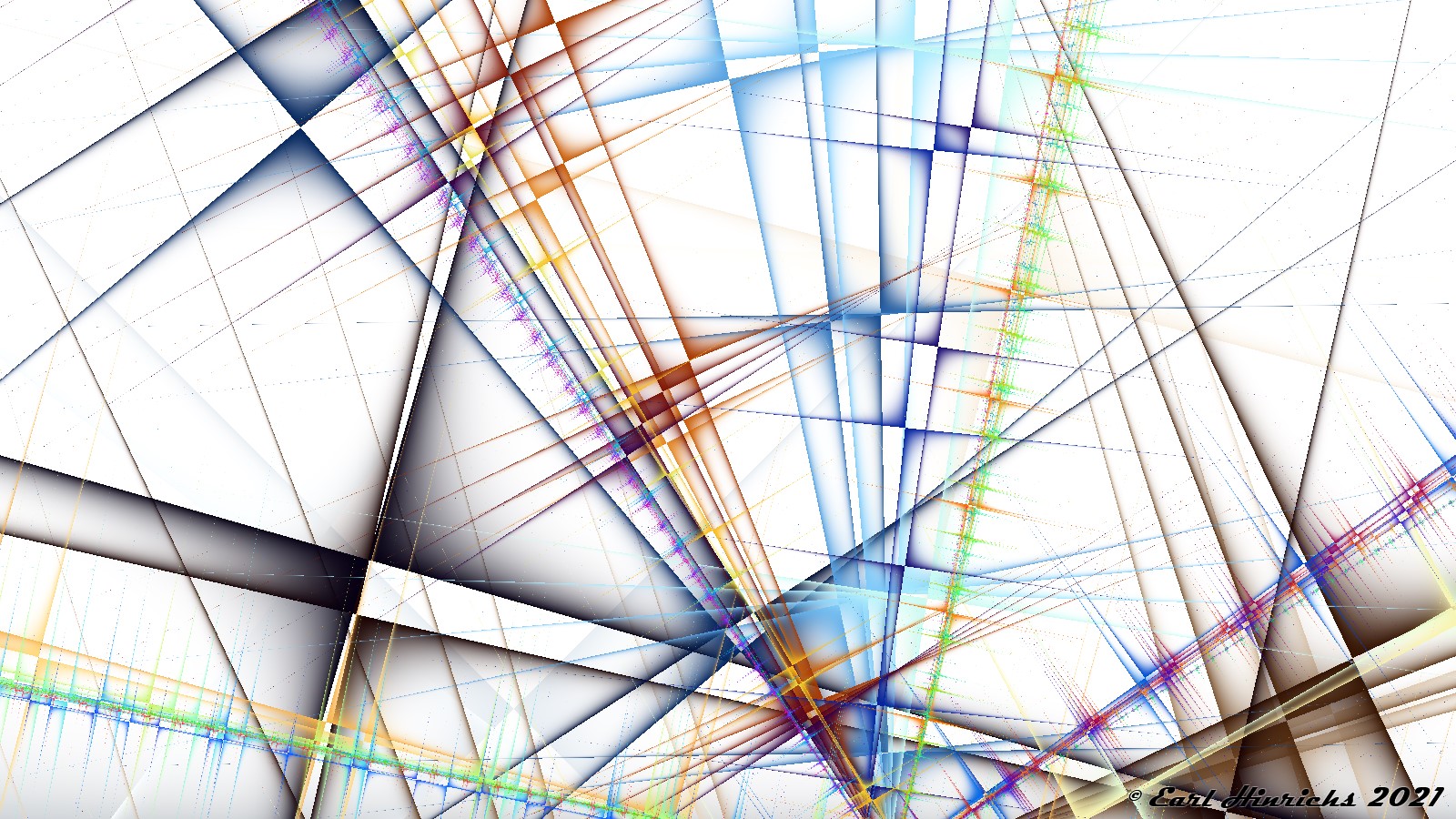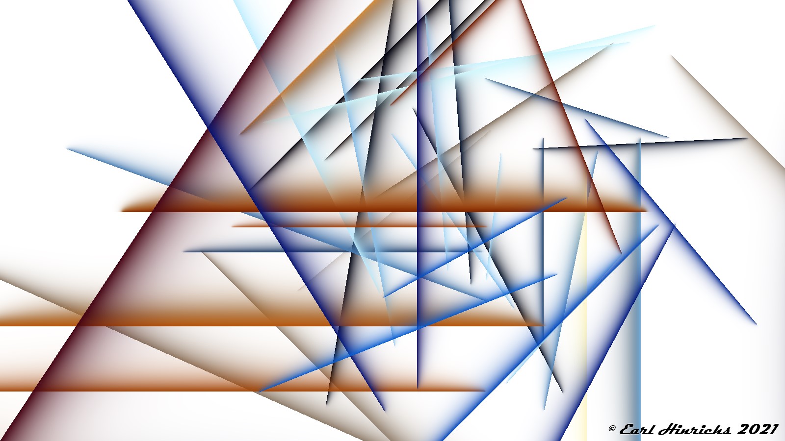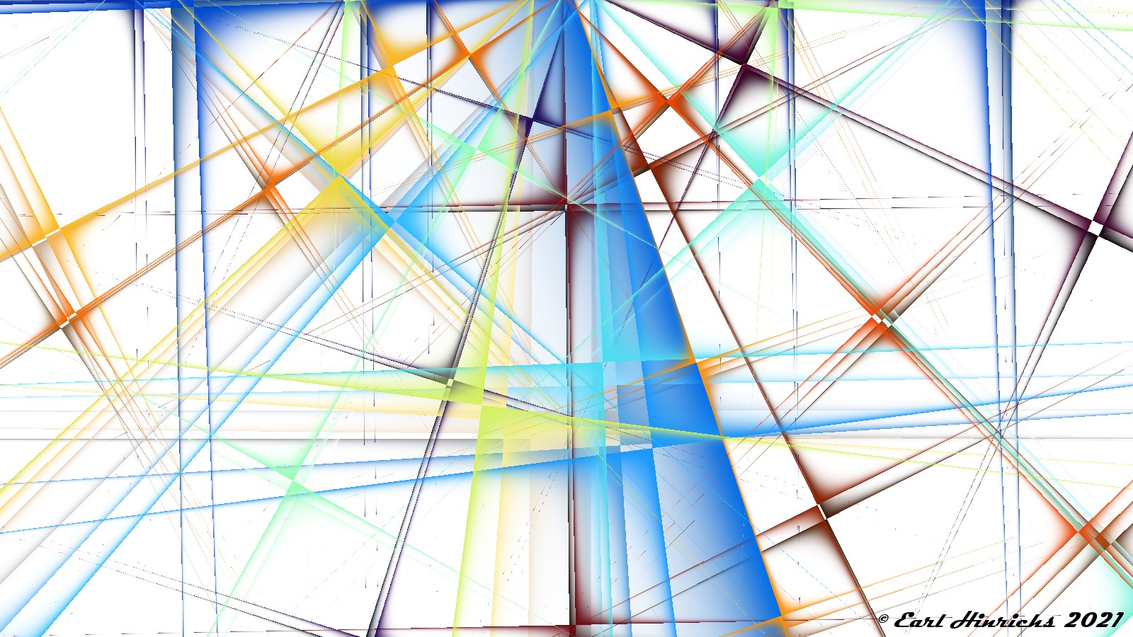 We are now two weeks into this series, so time for a quick recap. The basic idea is to use affine transformations to tilt, stretch, and shrink lines. Always straight, no curves. Then adjust colors to highlight the "top" side of the line, while leaving the other side transparent. See Affine #1 and Affine #2 for more details.
