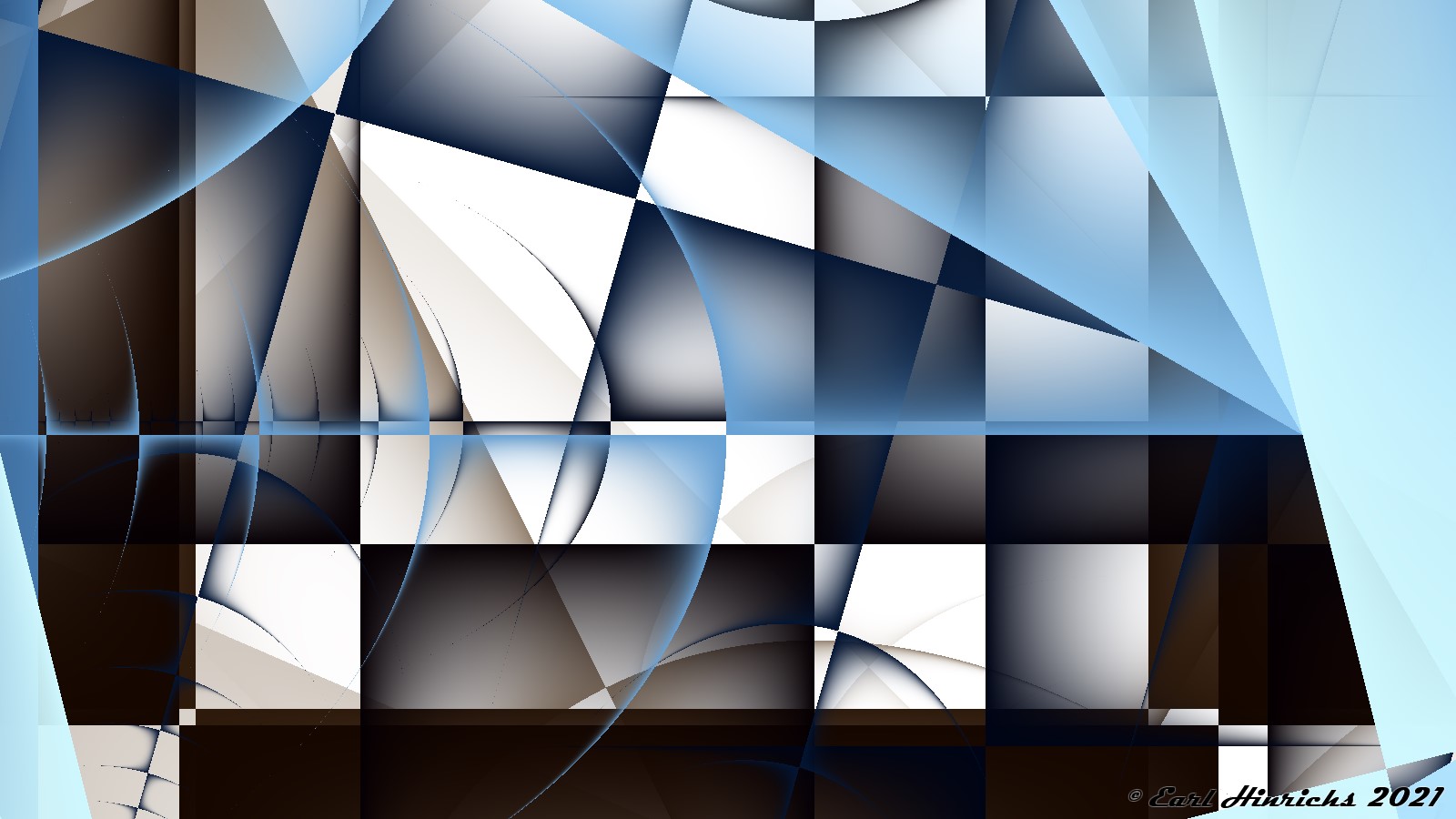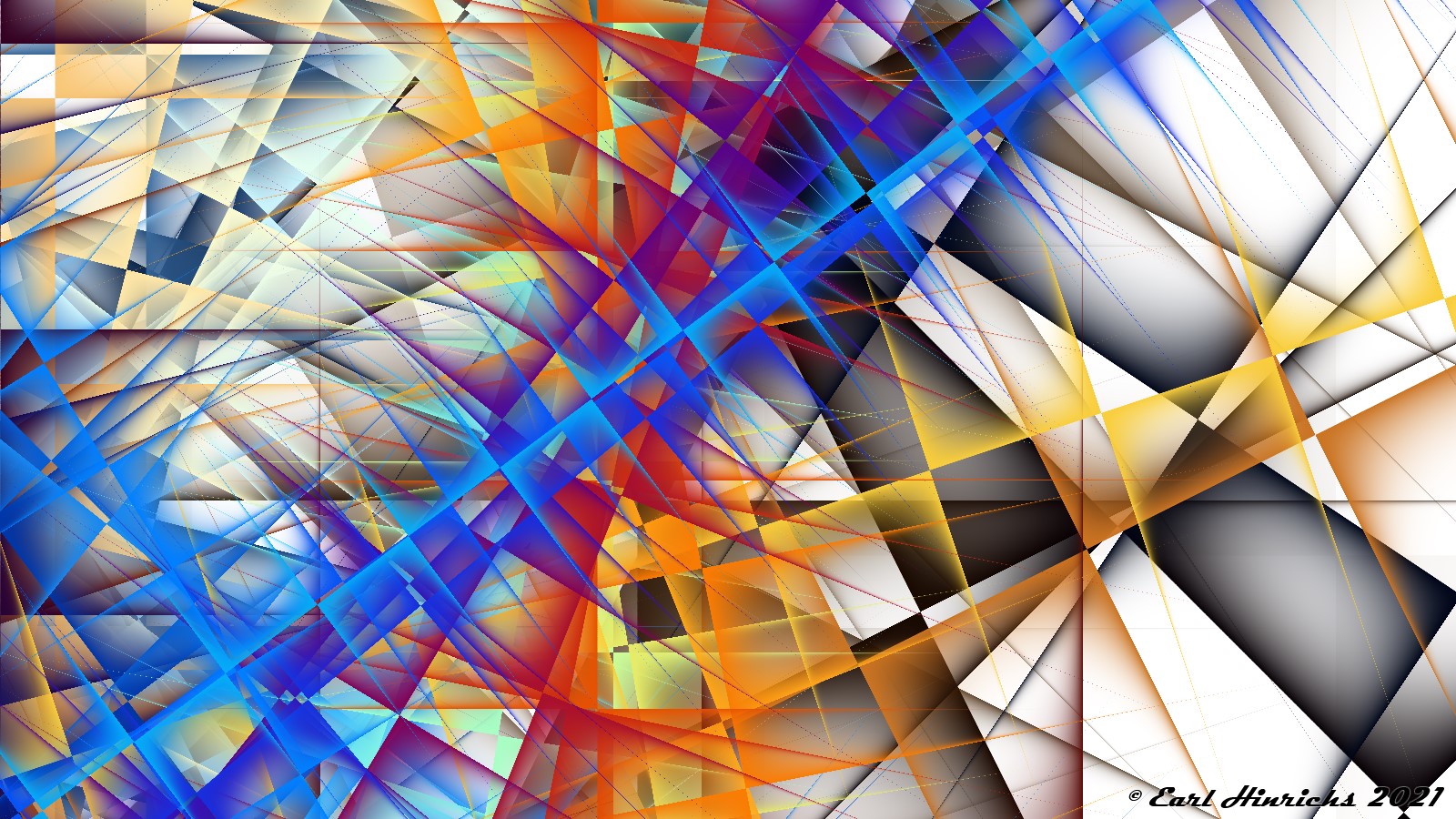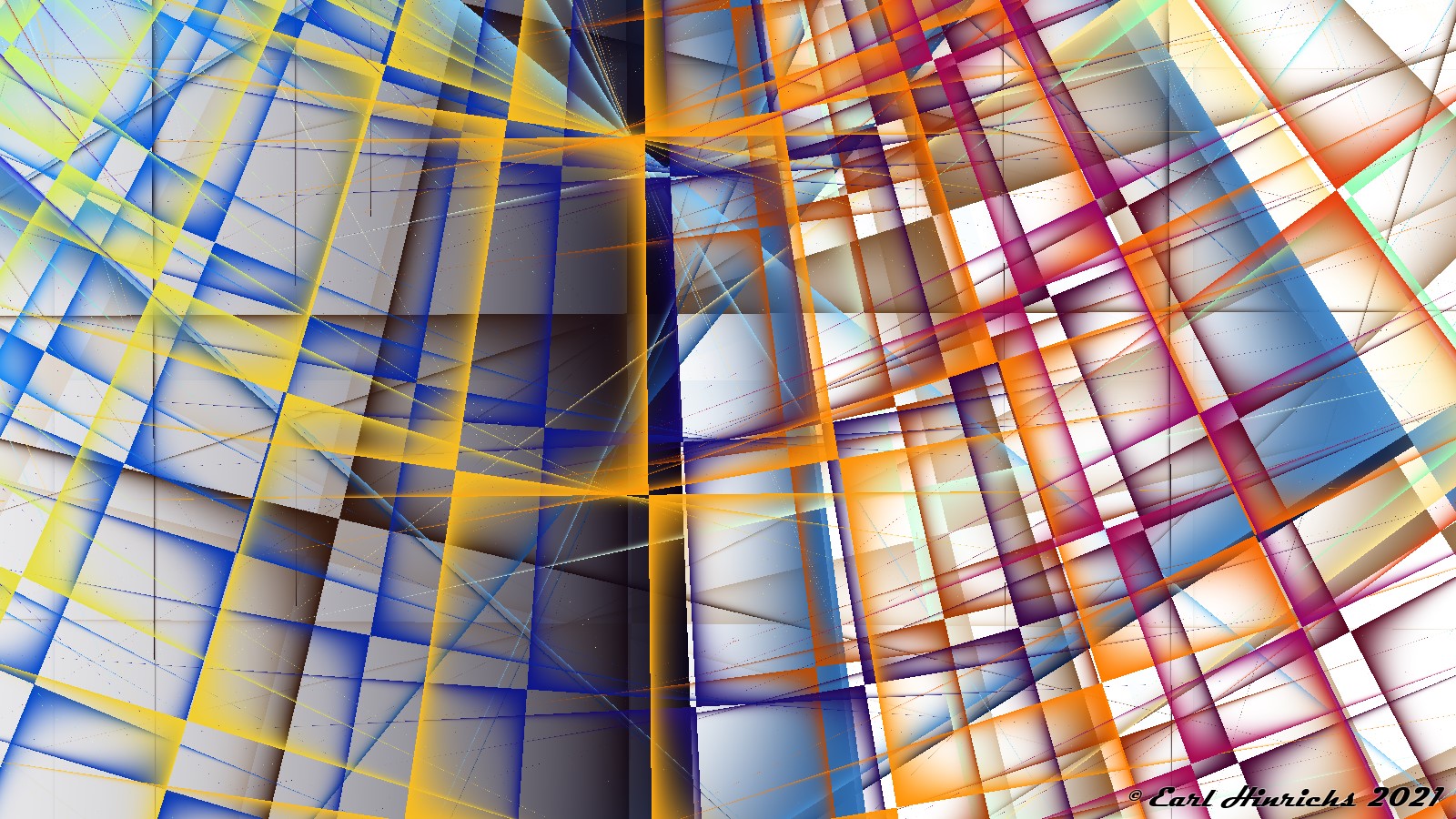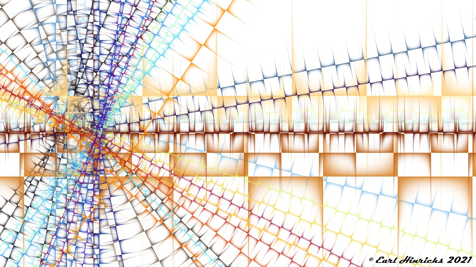 We are now two weeks into this series, so time for a quick recap. The basic idea is to use affine transformations to tilt, stretch, and shrink lines. Always straight, no curves. Then adjust colors to highlight the "top" side of the line, while leaving the other side transparent. See Affine #1 and Affine #2 for more details.