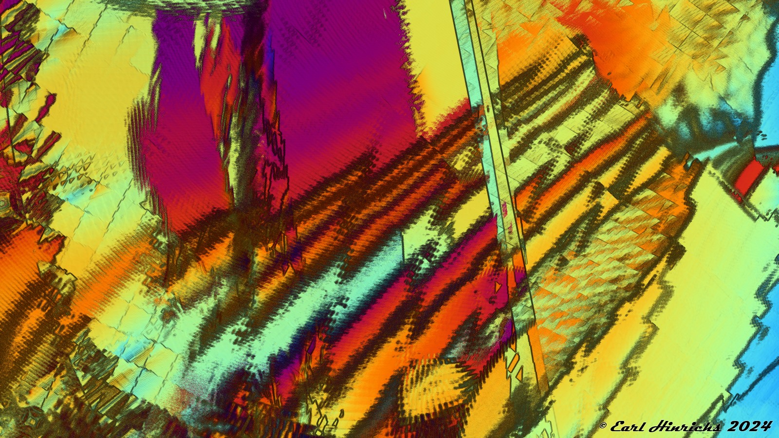 The first few have some things in common; bright colors, swooping shapes, and a hint of tiling in places. I am giving this set the not-too-imaginative name "Bright Zone II". I already did a Bright Zone series earlier this year. With the light fuzziness around the edges, and the aforementioned tiling, these do not fit with the earlier series.