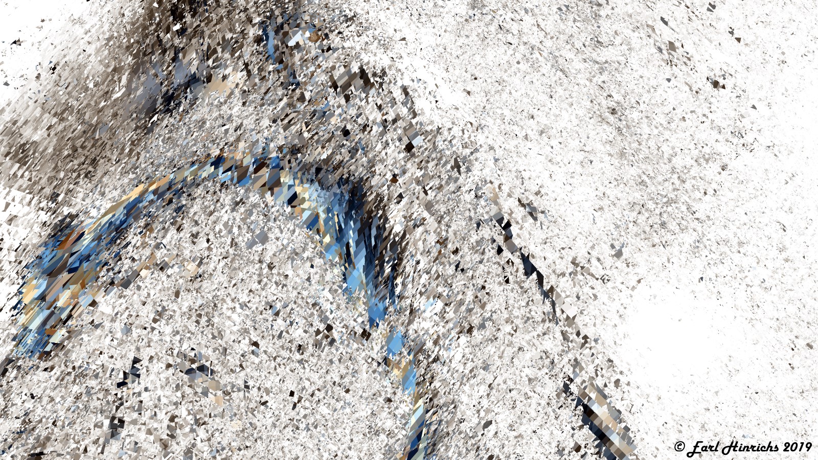I am trying out different palettes, and mostly working on the overall shapes. More large waves and swirls. Most of the confetti / chopping is low volume, small displacement, with small areas of high mixing.