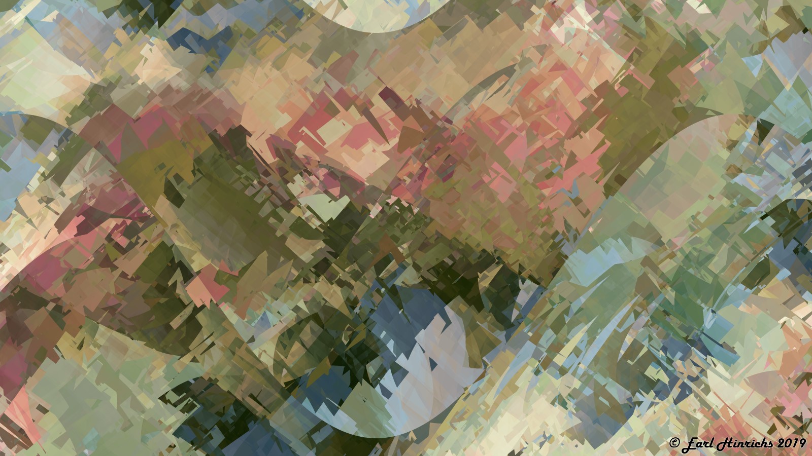 Here is another one similar to something on my todo list. "curved line cubism". This one has a vague cubist feel. There are lines that run through the image. There are similar colors on each side, but no continuity across the them. The lines are curved, suggesting a flow, but not the usual straight lines, squares, circles you would expect in a cubist painting.