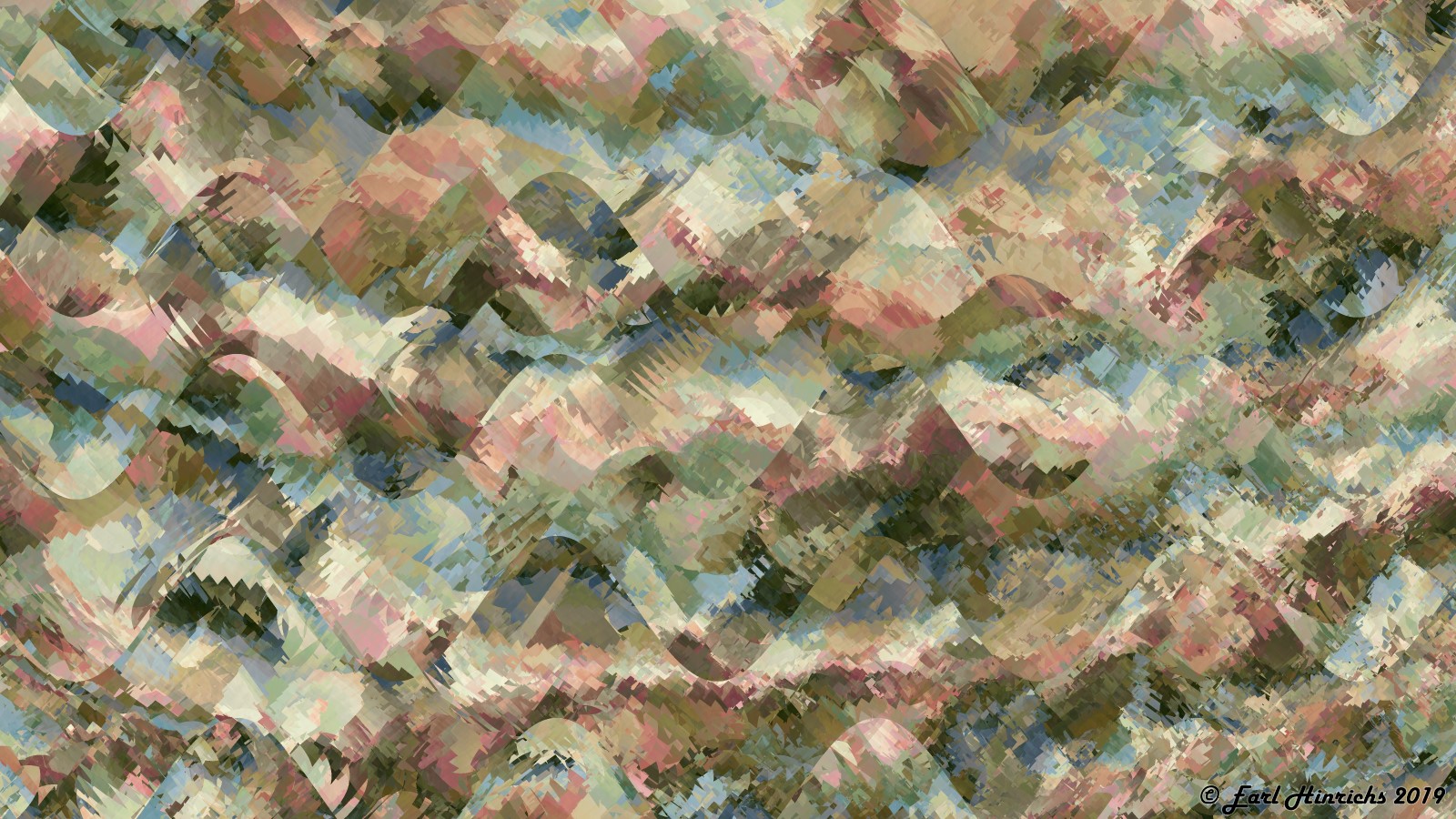 Sometime the quiet colors just work. This one starts with an overall impression of gentle waves or hills. Then as you look closer you see the chopped color blocks. But now they are slightly different hues and shades. The individual pieces of confetti does not stand out as it does with a palette of bright primary colors.