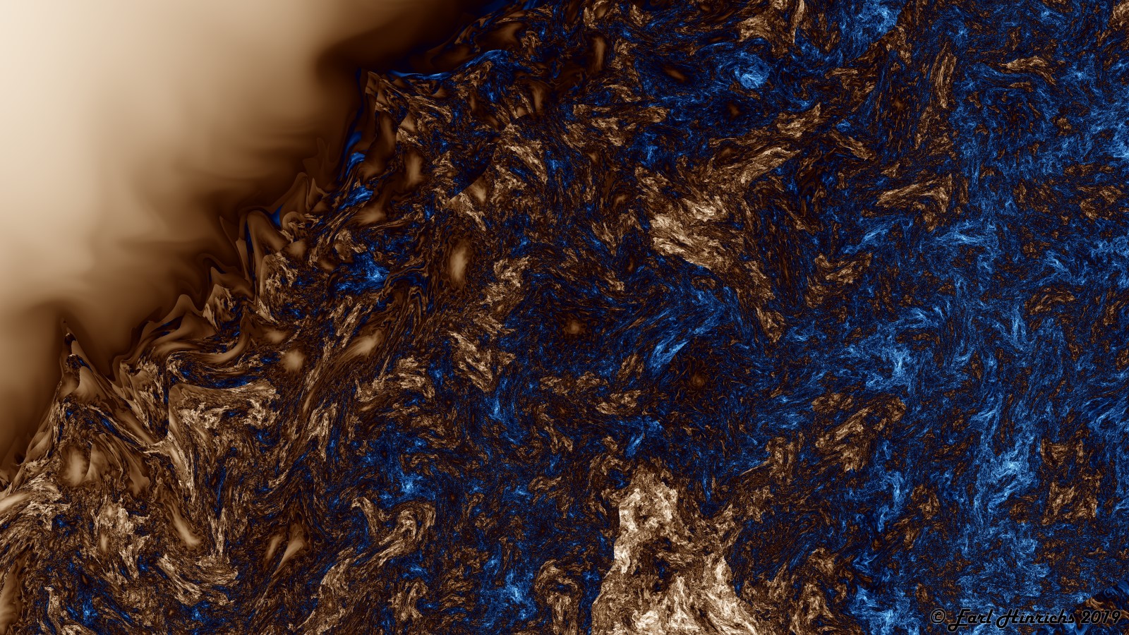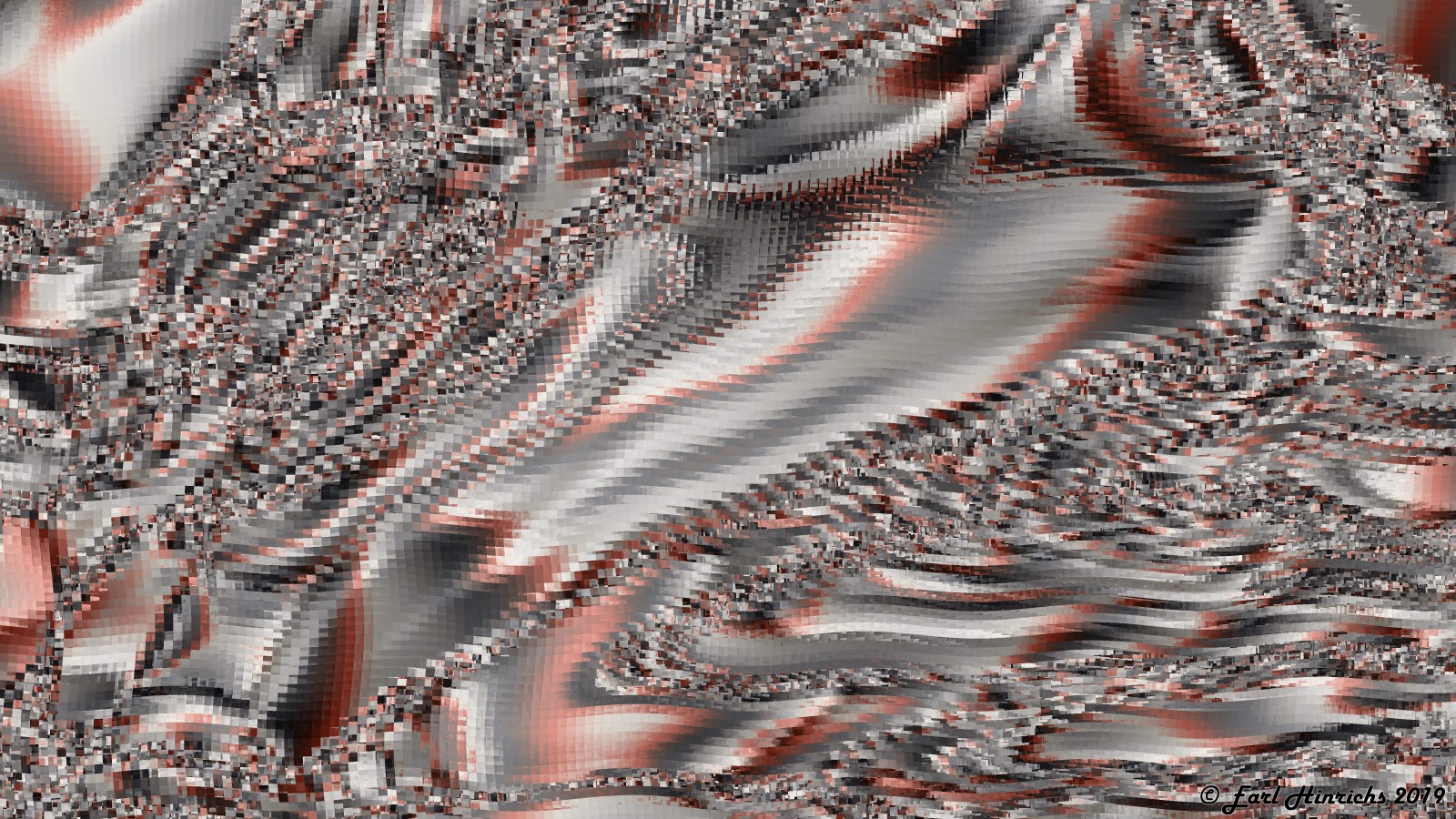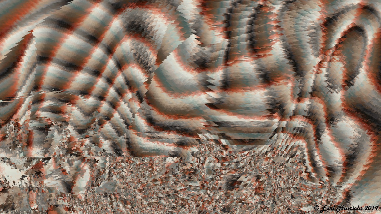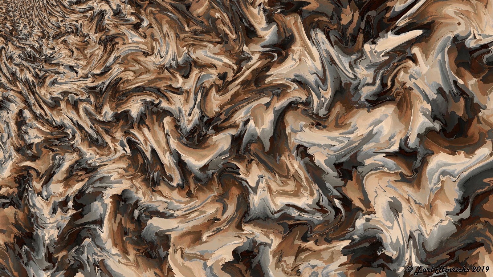 I am trying out different palettes, and mostly working on the overall shapes. More large waves and swirls. Most of the confetti / chopping is low volume, small displacement, with small areas of high mixing.