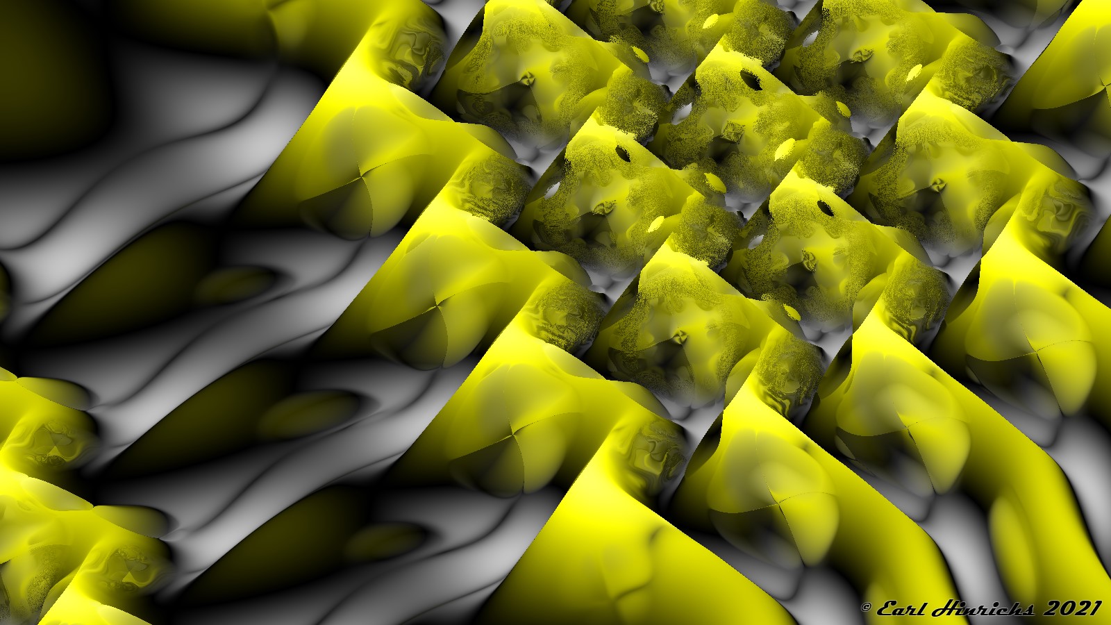 Today's feature color is yellow. I am taking a small step away from fuzzy lines. Instead yellow is used to highlight an array of only slightly fuzzy diamond shapes