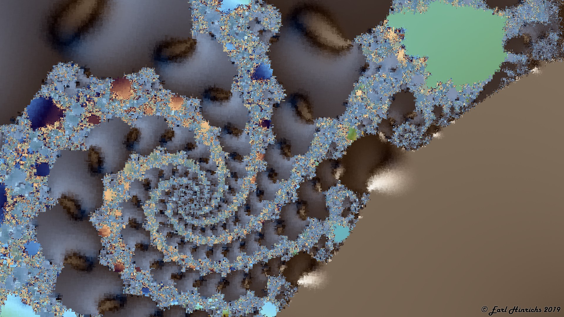 I am paranoid that someone will vehemently disagree, and that paranoia drives me to deal with the minutia. First, I in no way intend to diminish the work of fractal artists that use someone else's program. Discovery and selection an interesting fractal region, then framing it and coloring it is the artistic input. That takes a lot of skill and practice and creativity.