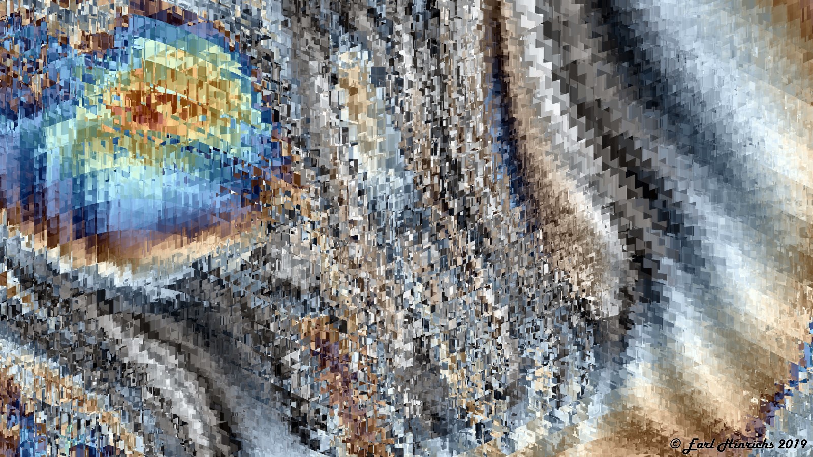 Some may consider this image a fractal. I don't but someone else might. Fractals are sometimes defined as having fractional dimension. I doubt that anyone could compute a Hausdorff dimension for today's image from the underlying formula/algorithm. But by appearance, it certainly seems to fit the definition. Also the process of repeatedly chopping and shuffling pixels seems fractal in nature.