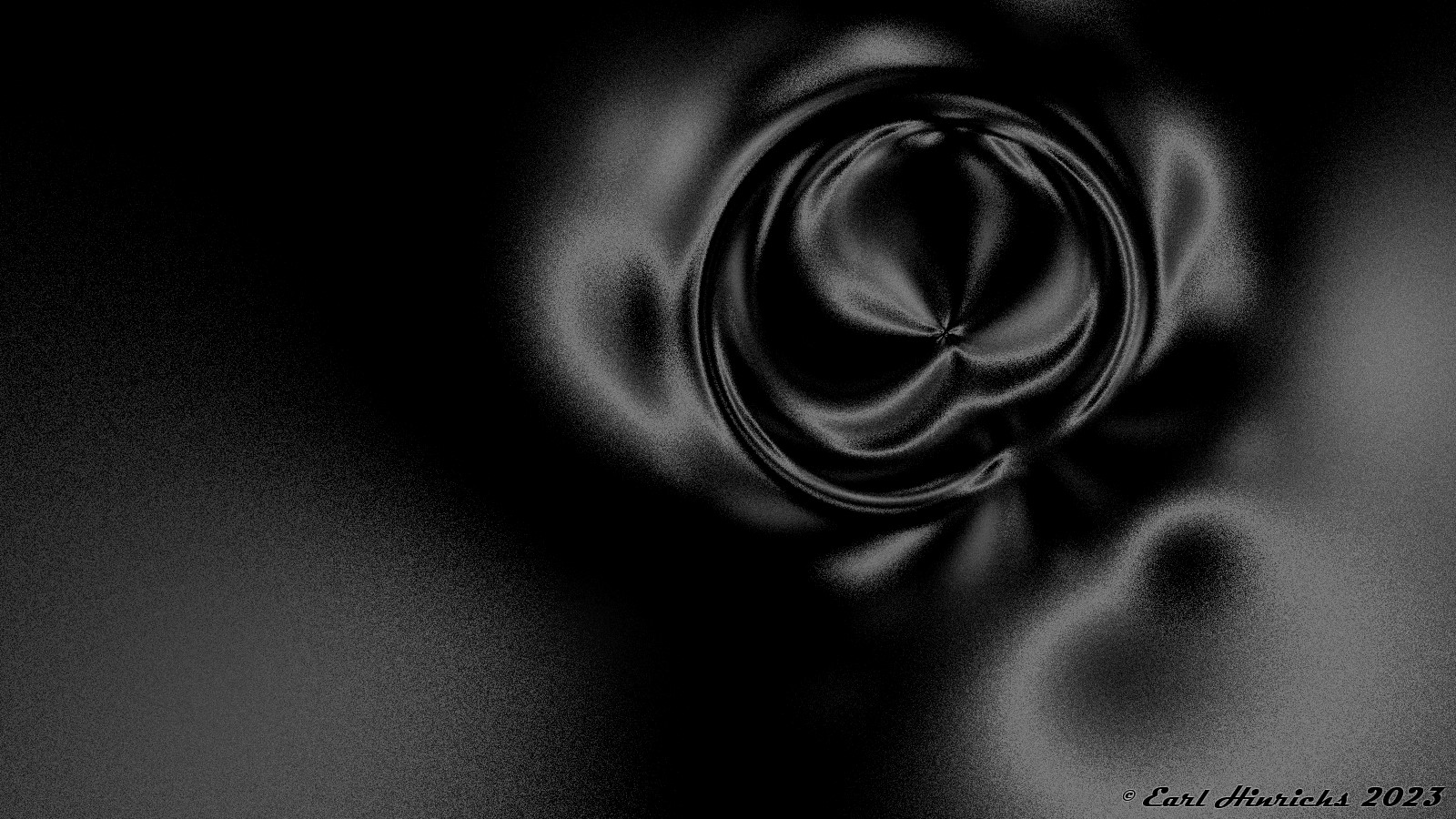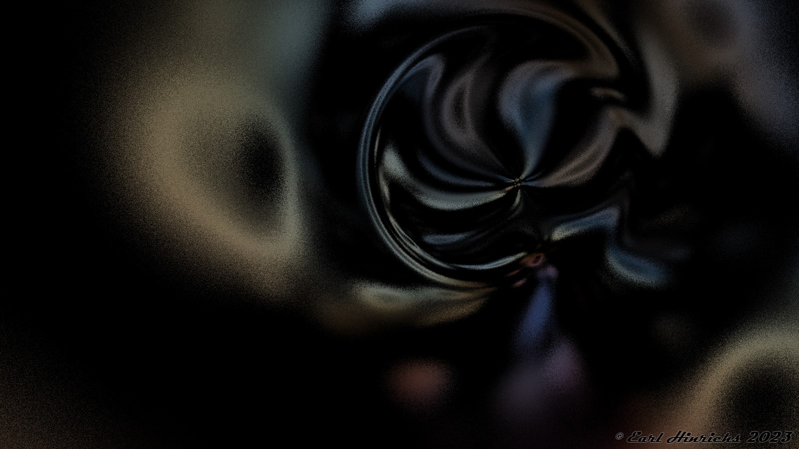 You might expect the spirals to rush towards, or emanate from, a black hole or point of infinite depth in the center. In fact, that is something I would normally do. Here I have put some dots and holes at that focal point.