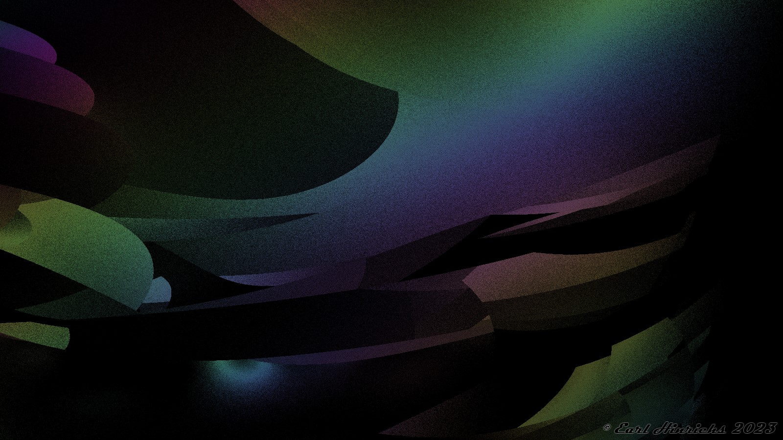 This is an experiment in shifting color planes in Experiment 2023.1 #15. Simple mis-aligned rgb planes looked too cheap. Here I make the size of the shift proportional to the intensity of the color, and then blend in the original.
