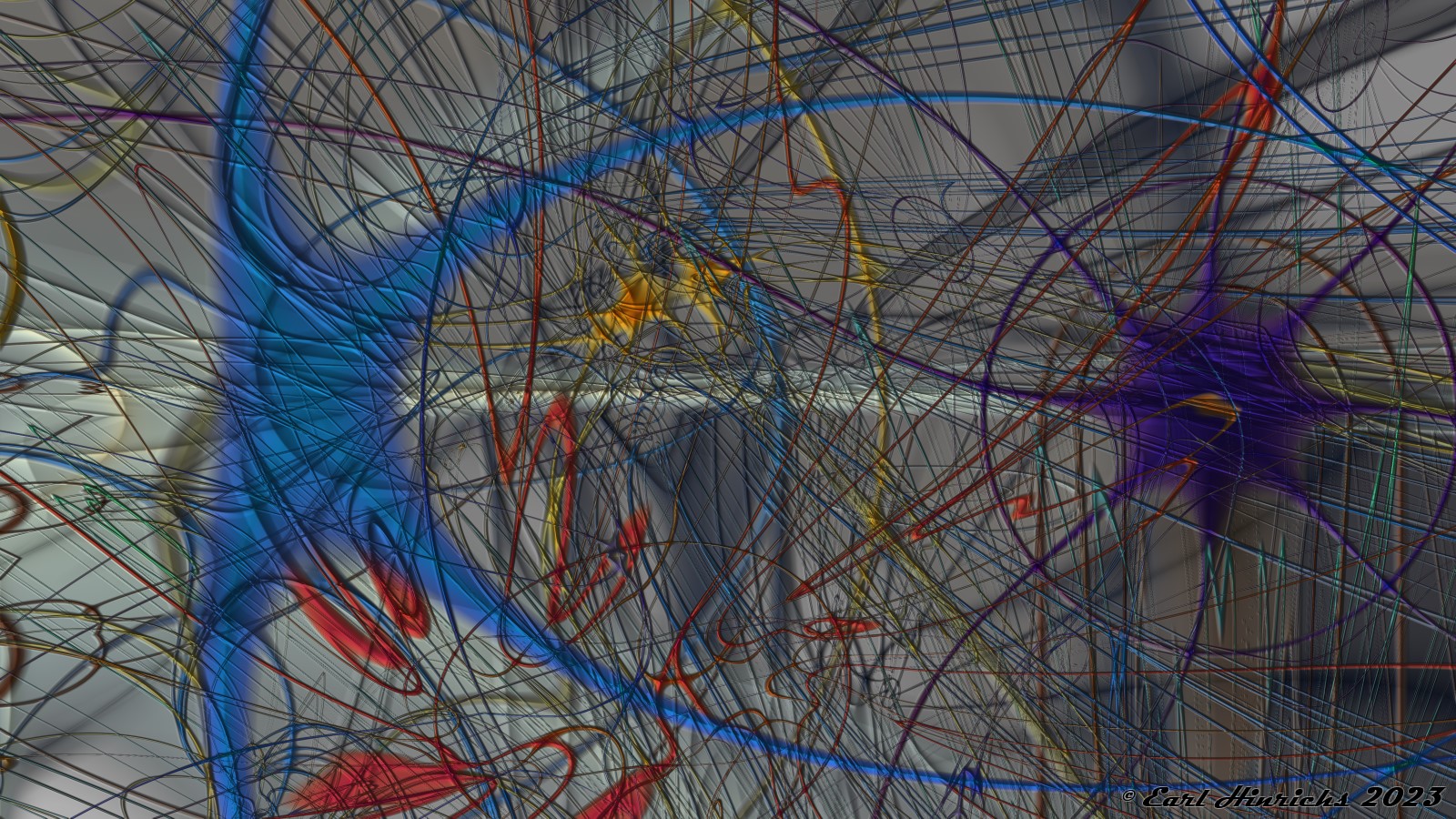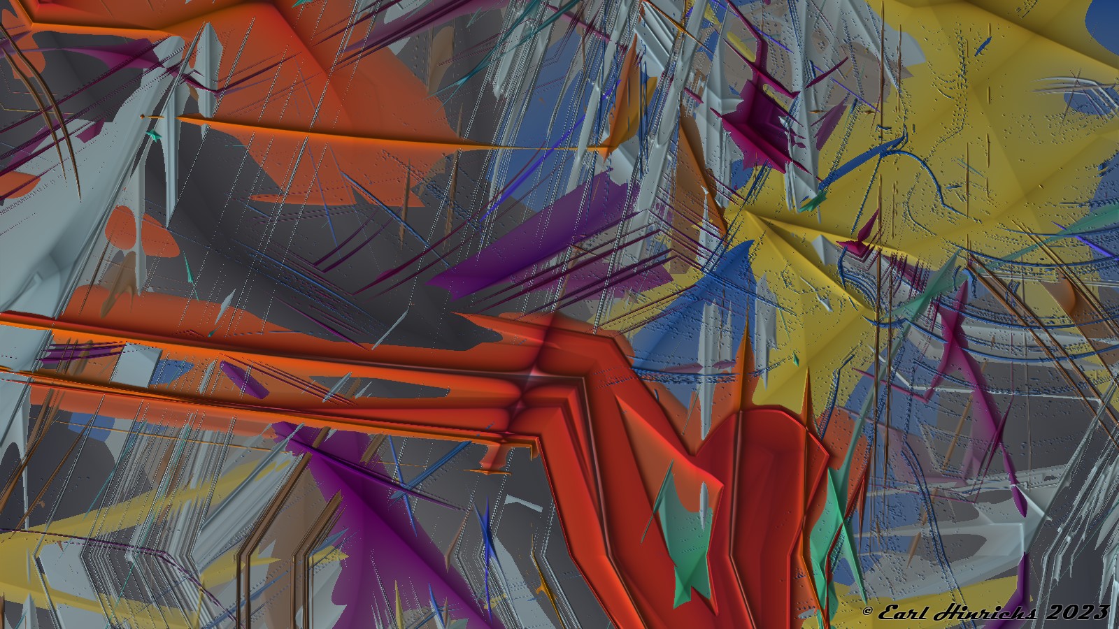 Experiment 2023.1 followed, which consisted, in part, of coloring the shapes in the previous series. Both of these were a bit of a struggle. I did not have anything specific in mind. I was not trying to create a particular mood or image. I just creatively splashed the screen. If I liked the result and thought someone else would find it interesting, that was good enough. Still, despite that freedom, it seemed more like work than hobby to meet my self-assigned goal of one post a day.
