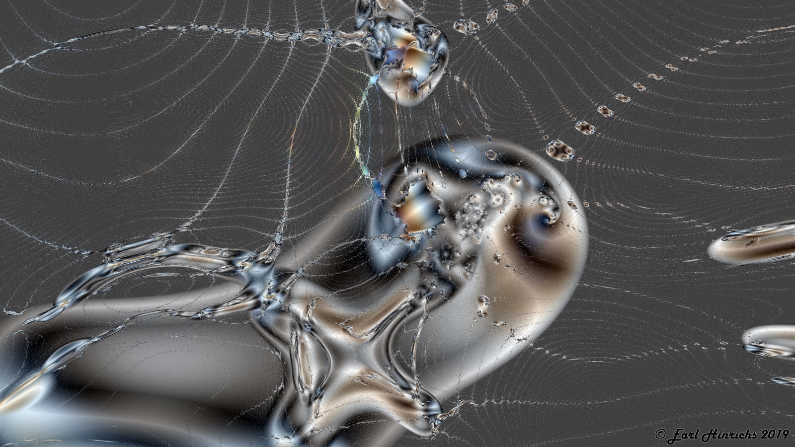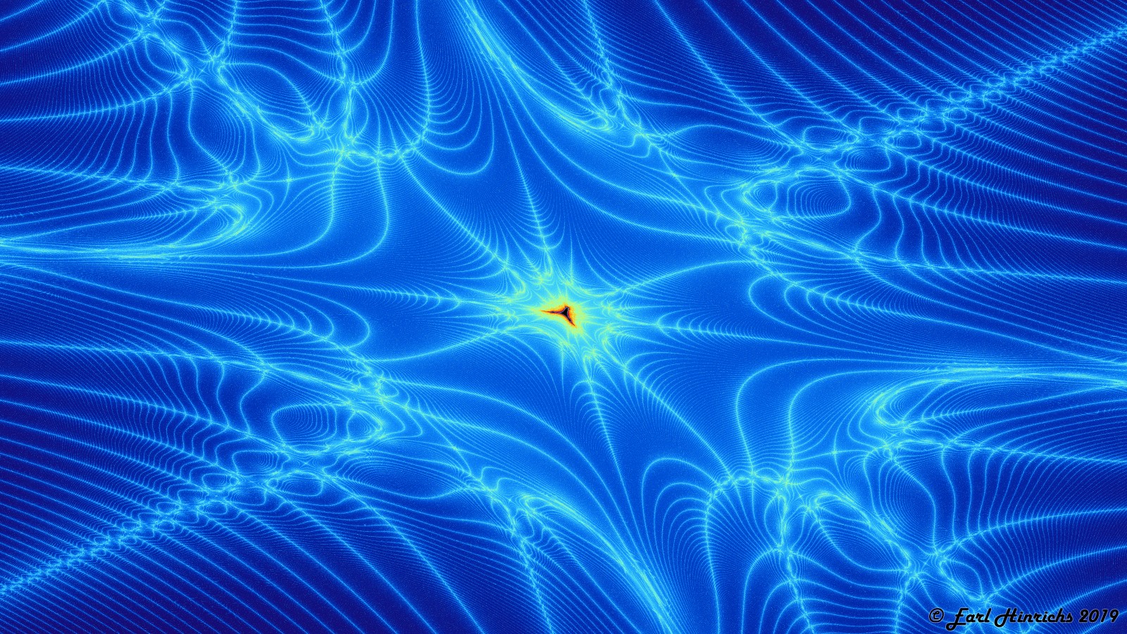 I led with some possible emotional reactions to this image. Now a technical examination. The viewer's attention is drawn to the center. The focal point is the exact center of the canvas. Focus or interest wanders towards the edges, then snaps back to the center.