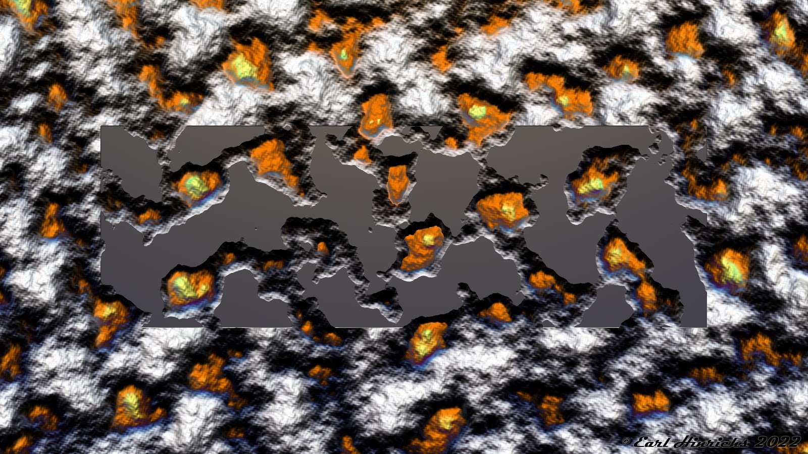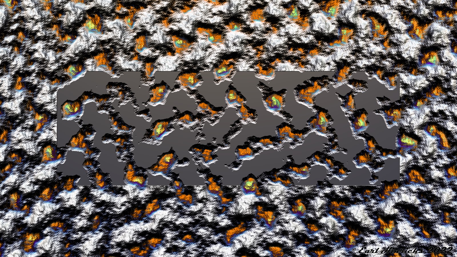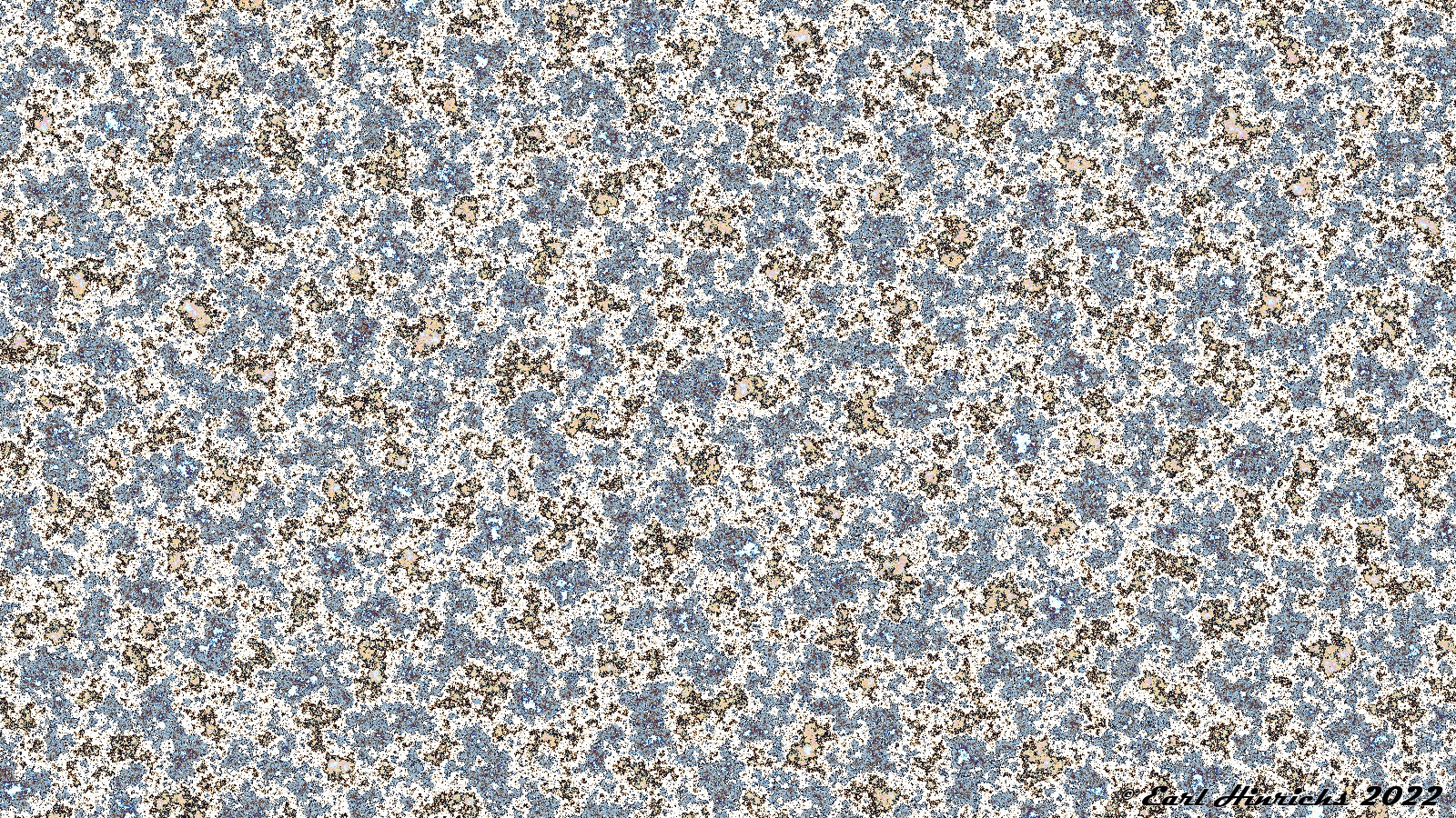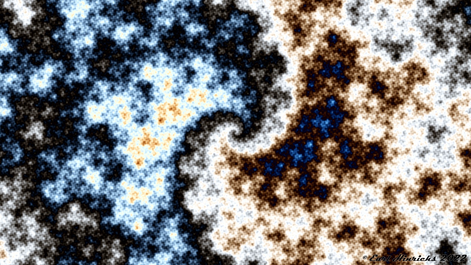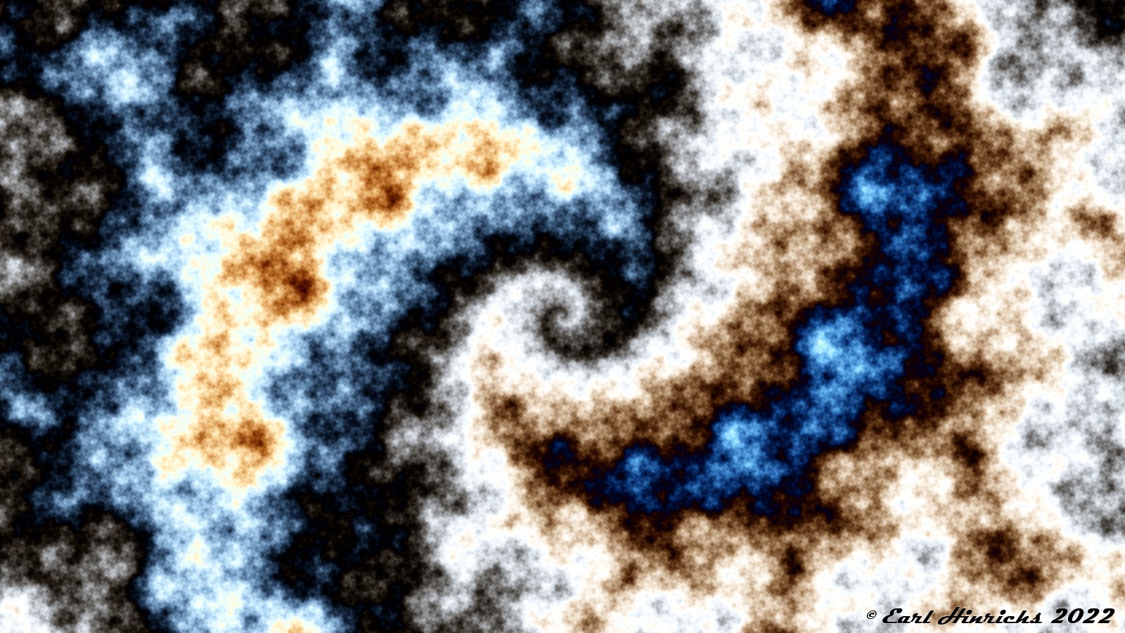 Here the goal is to use the rugged terrain algorithm from early posts to add texture to a simple fractal. The previous picture looks like painting on a coarse canvas, or perhaps a needle point. Today's picture is the same design, but with the texture dialed back some.