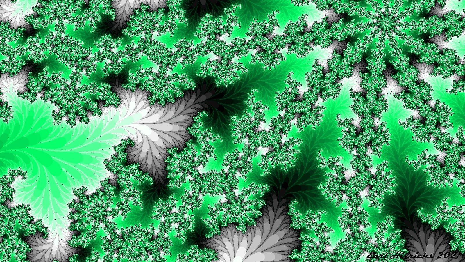 On the other side of the coin, the pictures still have some artistic value. This is more discovery and less constructive than when I set out to create art. Even on the discovery side I spend less than the usual amount of time framing and coloring the fractal. But still, I hope you find these more interesting than a graph of a parabola.