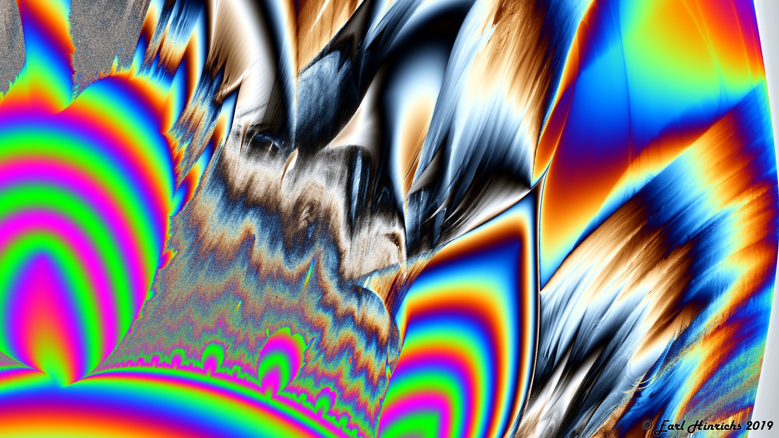 First the TL;DR version. Fractal images based on the ubiquitous $ z^2+c$, are clean and orderly. Complex yes, but also clean. Fractal based on non-holomorphic functions, (and many rational functions) are messy with dust and brush strokes, like today's image.