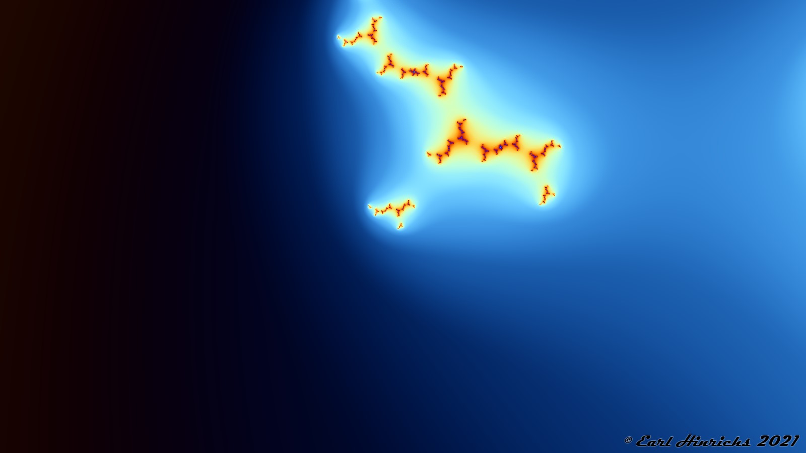 Take a look back at Sequence Fractals Part I #7, the two-cycle 2.05. Today we are looking at a zoom of the left most subgroup of the group of islands in the top left.
